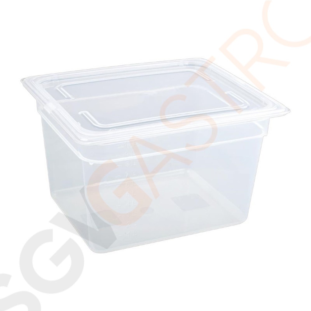 Stichworte: Vogue Polypropylen GN-Behälter GN1/2 200mm 200mm tief. Mit Deckel. Kapazitat: 11, 7Liter