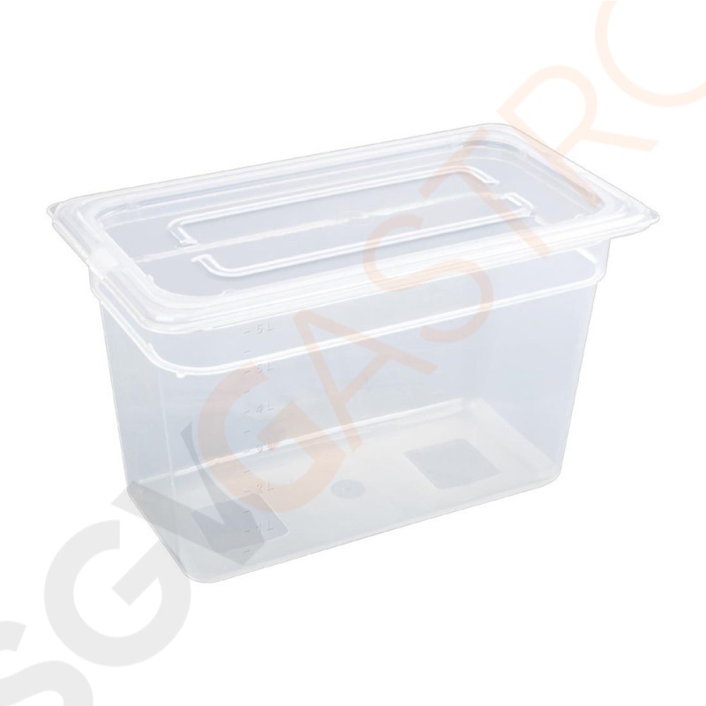 Stichworte: Vogue Polypropylen GN-Behälter GN1/3 200mm 200mm tief. Mit Deckel. Kapazitat: 6, 9Liter