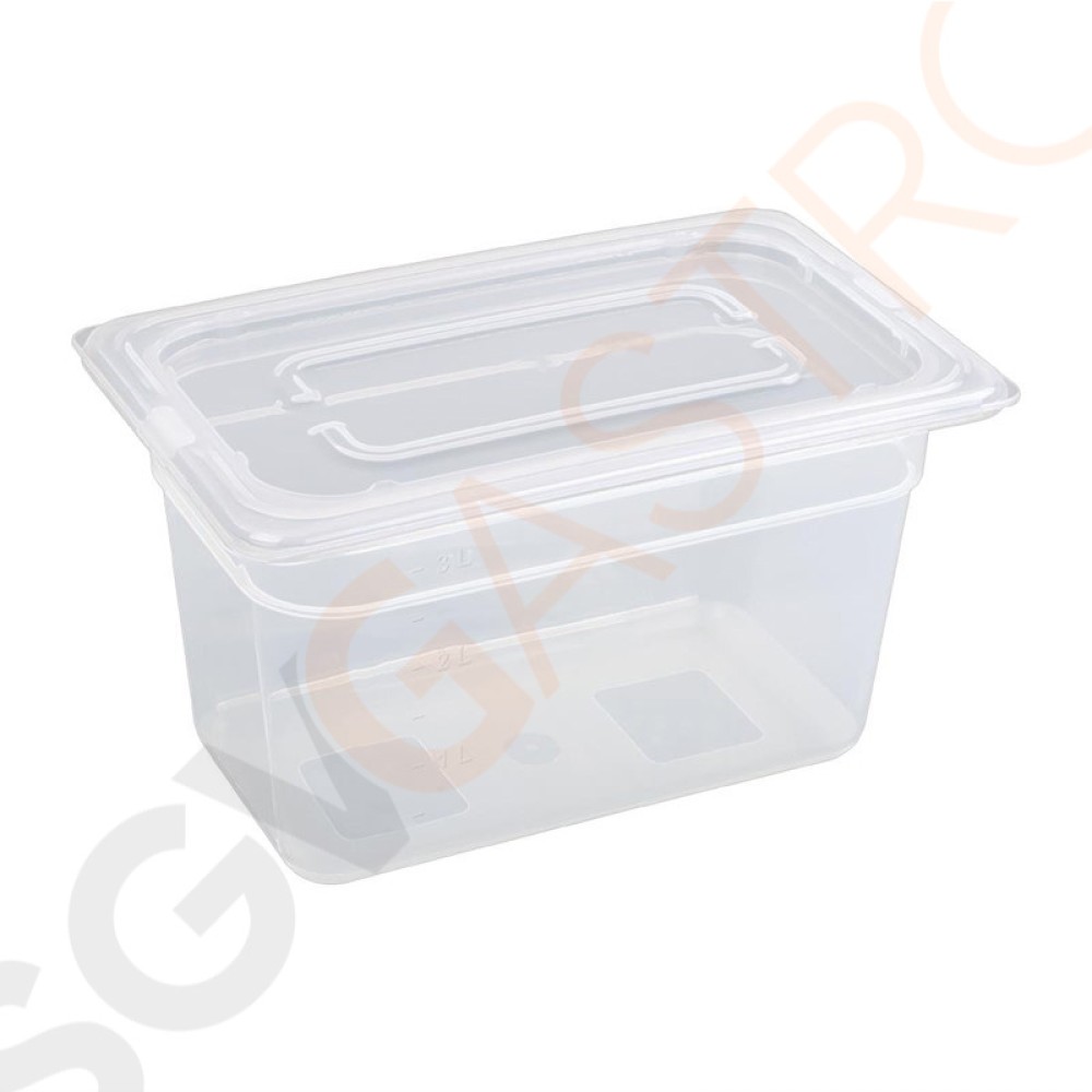 Stichworte: Vogue Polypropylen GN-Behälter GN1/4 150mm 150mm tief. Mit Deckel. Kapazitat: 3, 7Liter