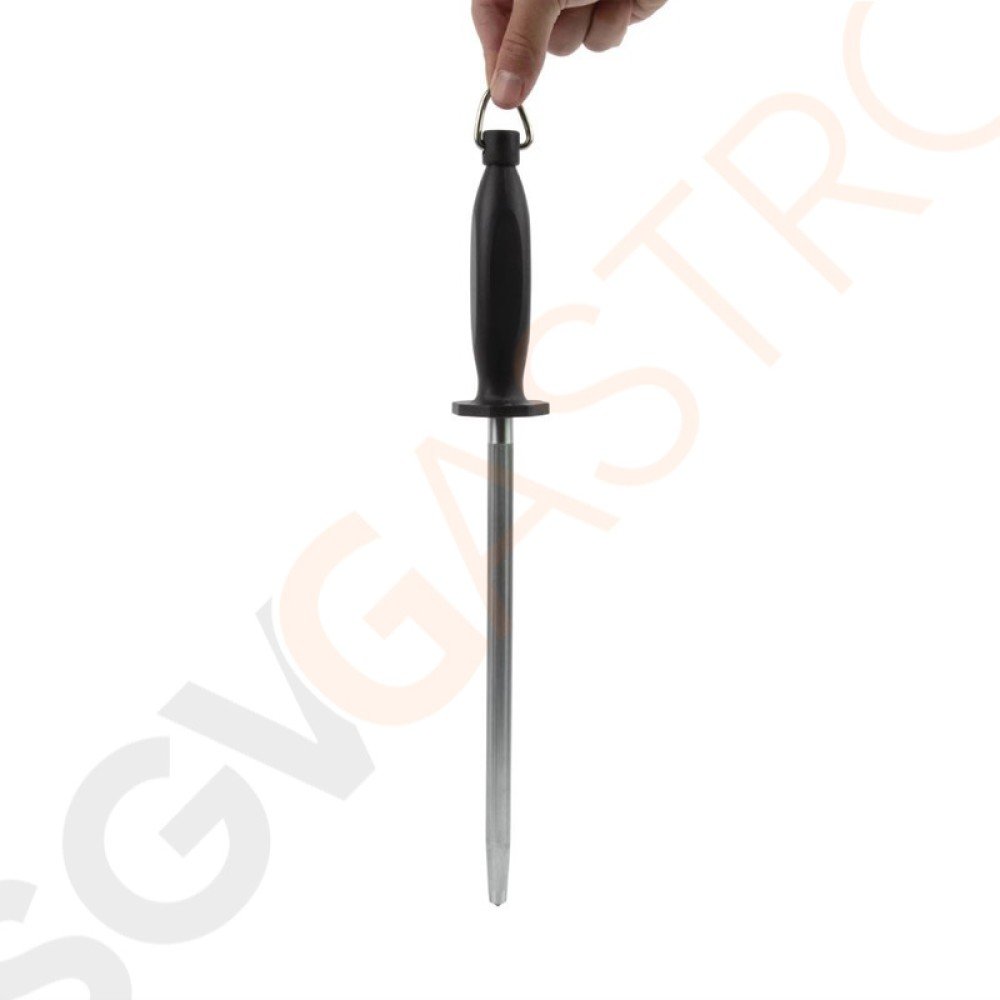 Runder verchromter Schleifstab mit einem mittleren europäischen Schnitt, Kunststoffgriff mit Ring.