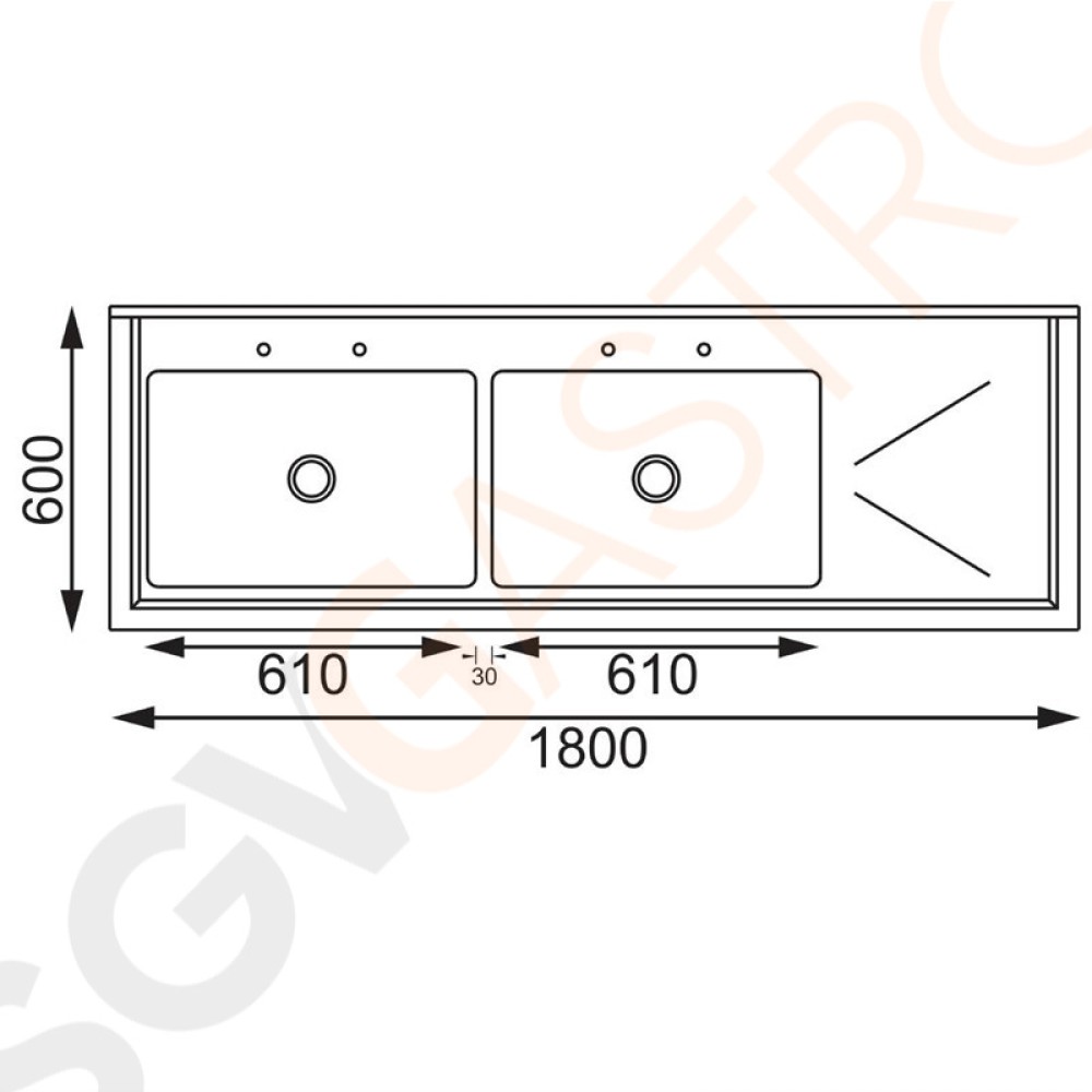 Vogue Spültisch Doppelbecken links 180cm lang Geeignet für Armatur Y770 | mit Aufkantung und Regalboden | Edelstahl | 90 x 180 x 60cm | 2 Becken links