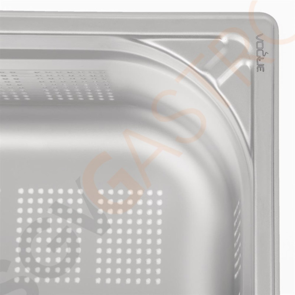 Stichworte: Vogue Strapazierfähiger, gelochter GN-Behälter 1/2 Edelstahl 150mm Fassungsvermögen: 9L | GN 1/2 | Tiefe: 150mm