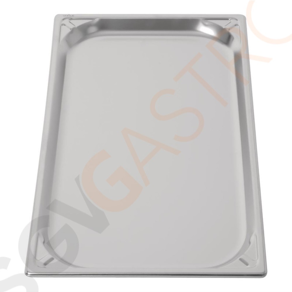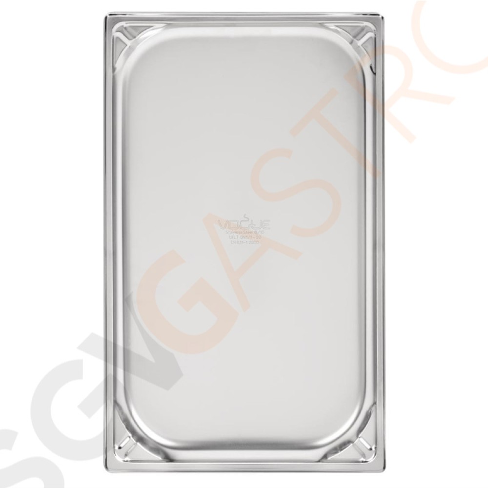 Stichworte: Vogue Strapazierfähiger GN-Behälter 1/1 Edelstahl 20mm Fassungsvermögen: 3L | GN 1/1 | Tiefe: 20mm