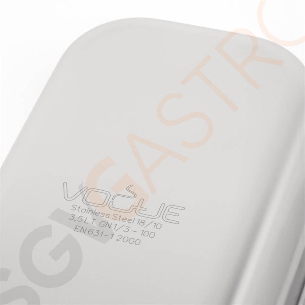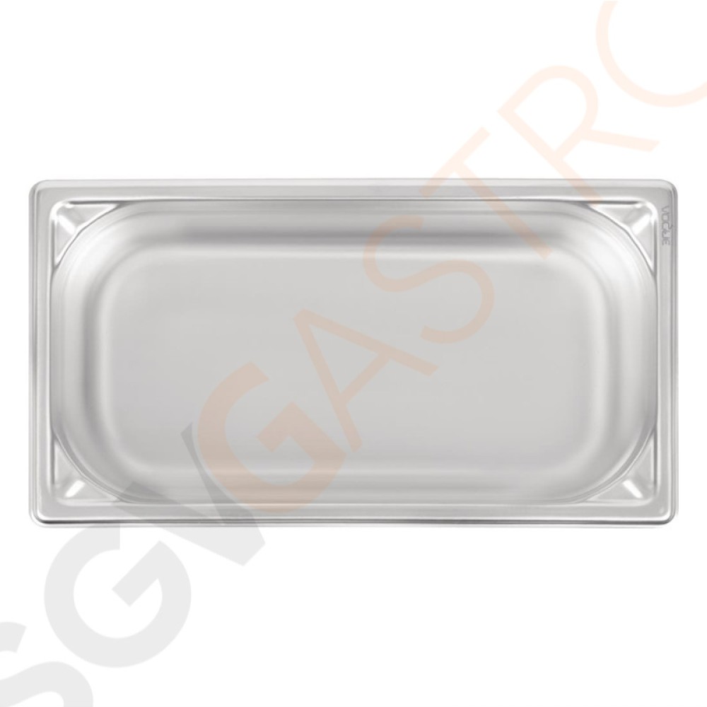 Stichworte: Vogue Strapazierfähiger GN-Behälter 1/3 Edelstahl 100mm Fassungsvermögen: 3, 7L | GN 1/3 | Tiefe: 100mm