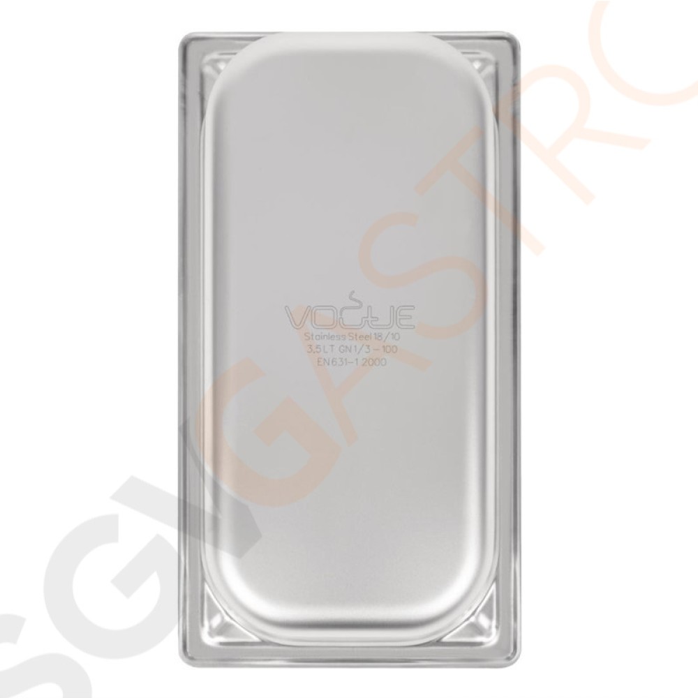 Vogue Strapazierfähiger GN-Behälter 1/3 Edelstahl 100mm Fassungsvermögen: 3,7L | GN 1/3 | Tiefe: 100mm