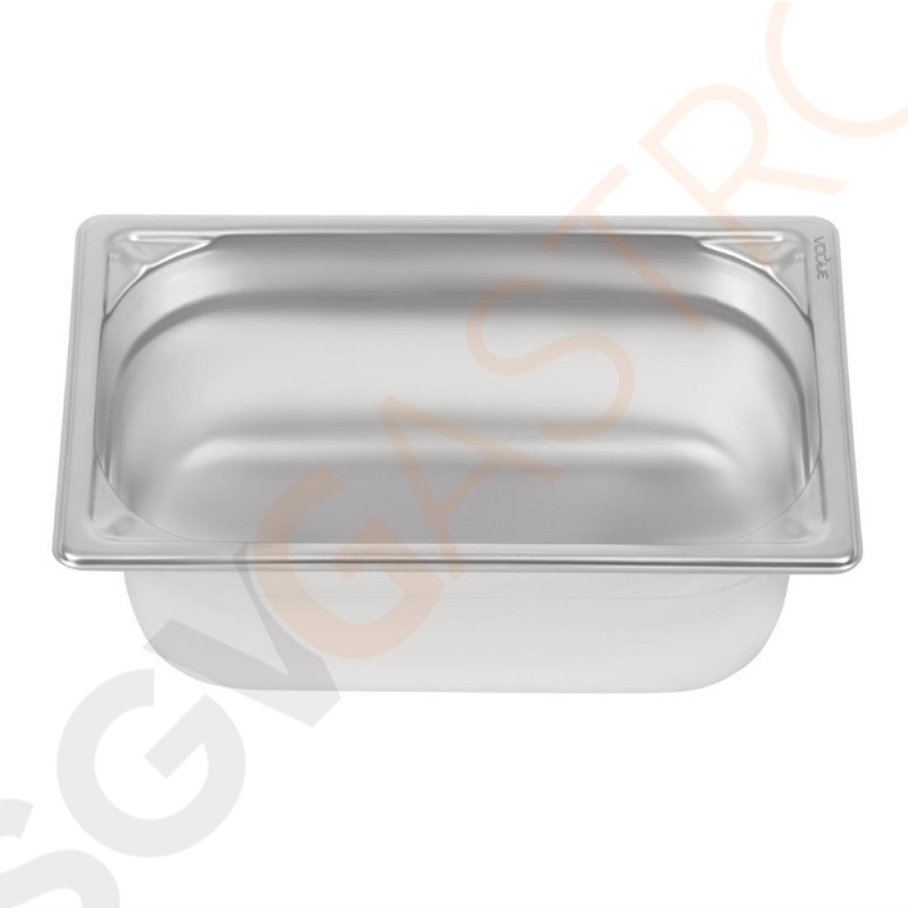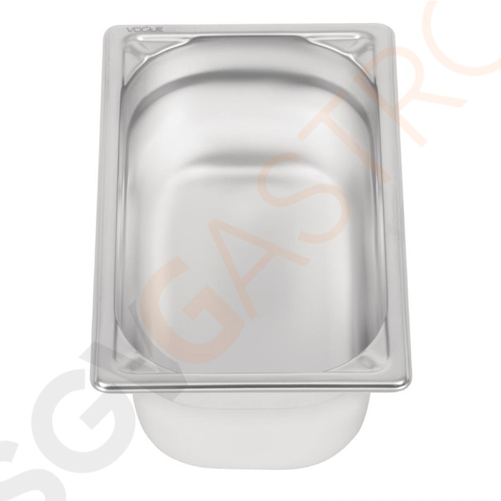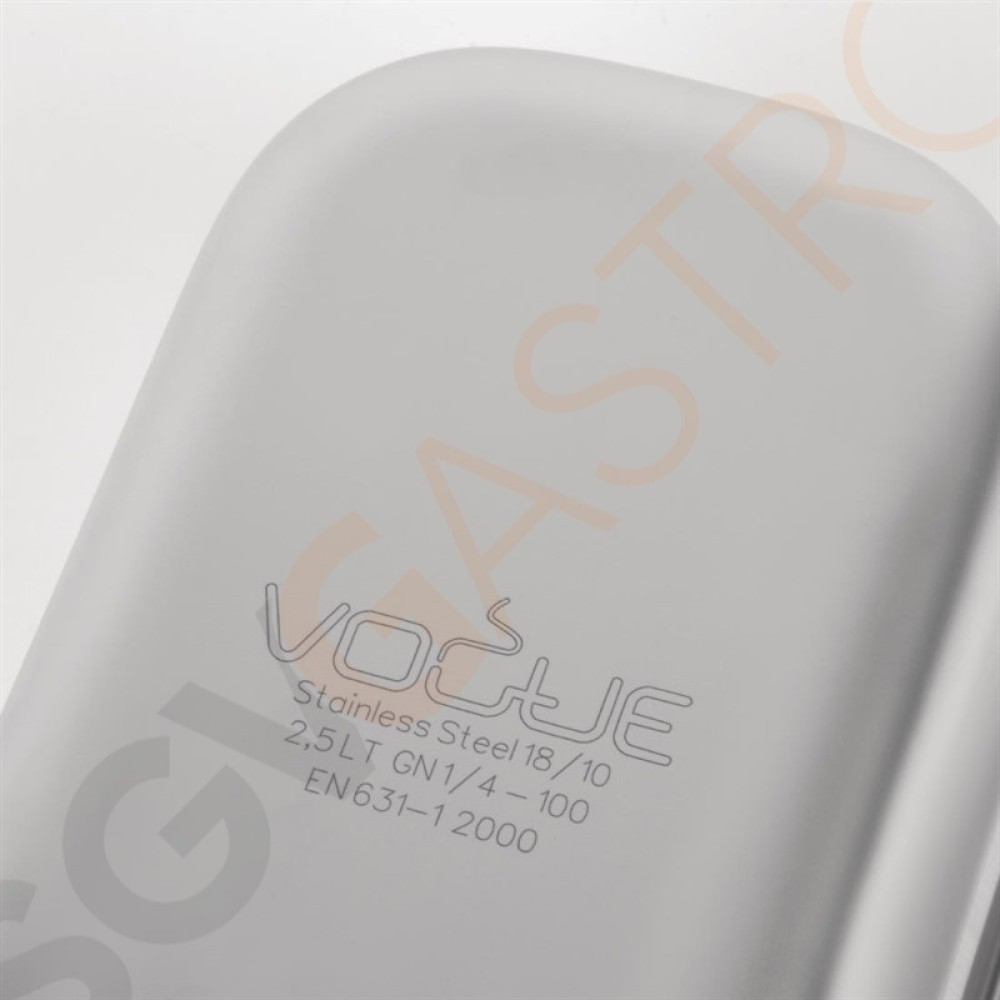 Stichworte: Vogue Strapazierfähiger GN-Behälter 1/4 Edelstahl 100mm Fassungsvermögen: 2, 5L | GN 1/4 | Tiefe: 100mm