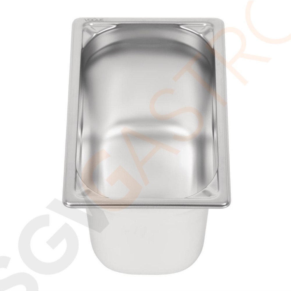 Stichworte: Vogue Strapazierfähiger GN-Behälter 1/4 Edelstahl 150mm Fassungsvermögen: 4L | GN 1/4 | Tiefe: 150mm