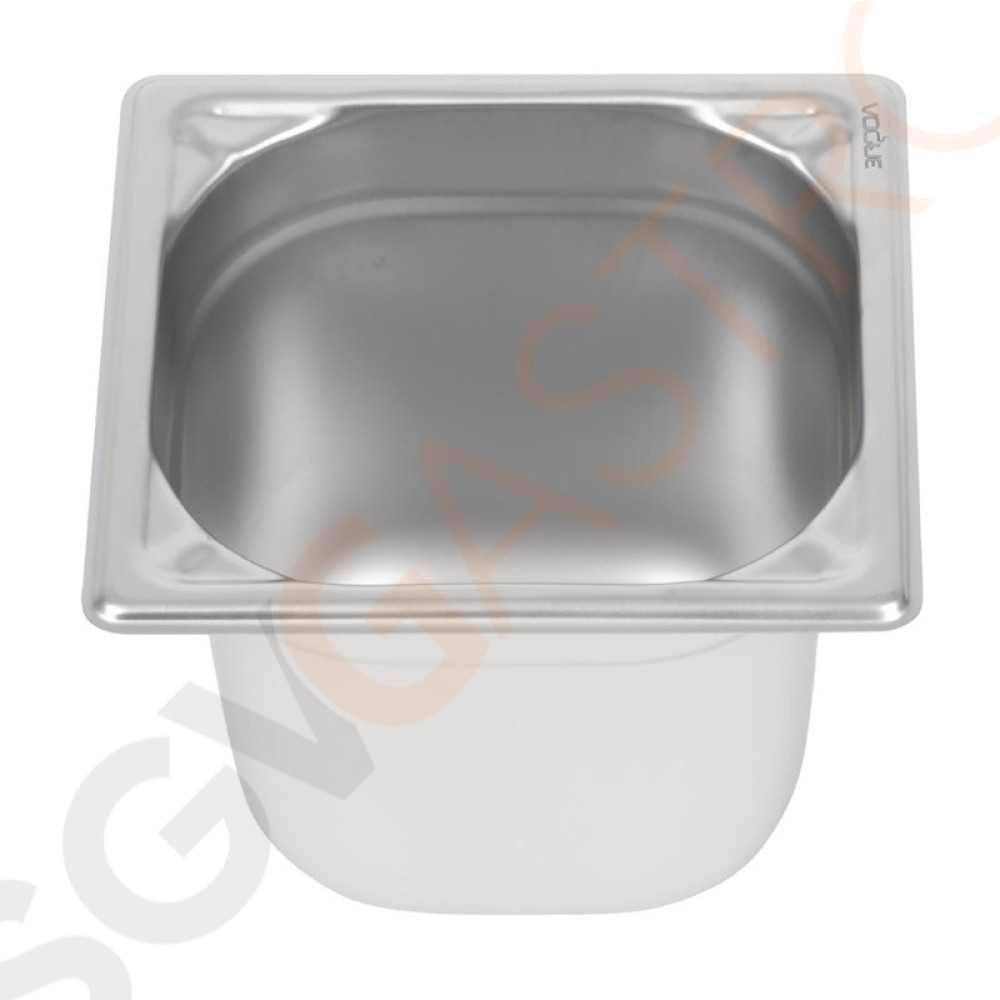 Stichworte: Vogue Strapazierfähiger GN-Behälter 1/6 Edelstahl 150mm Fassungsvermögen: 2, 2L | GN 1/6 | Tiefe: 150mm