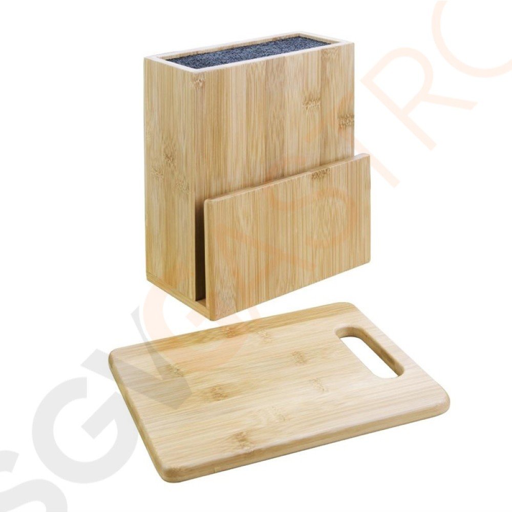 Bambusblock mit Kunststofffüllung. Entworfen um jede Form Messer in jedem Winkel zu halten. Mit Schneidebrett. Messer separat erhältlich.