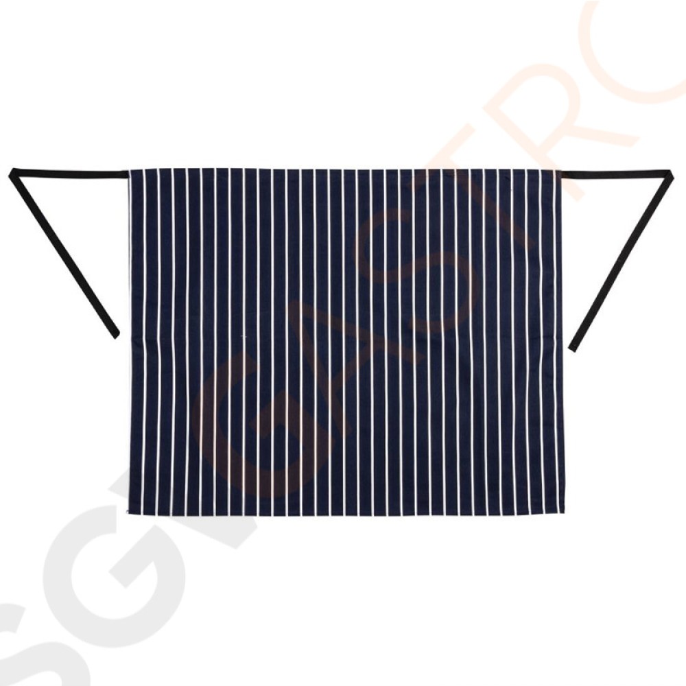 Vorbinder aus Polybaumwolle in einem traditionellen Streifendruck mit eingenähten schwarzen Bindebändern.