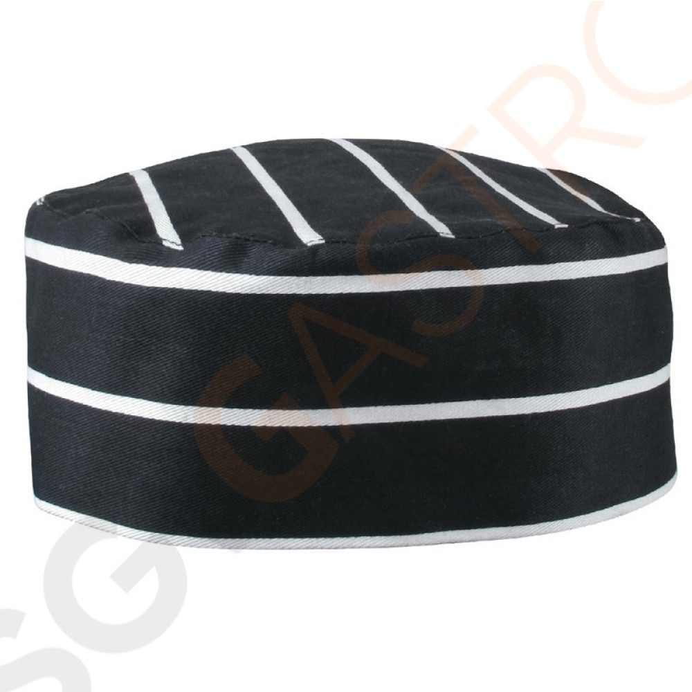 Stichworte: Whites Skull Cap Kochmütze schwarz-weiß gestreift Größe: Einheitsgröße. Unisex. Farbe: Schwarz mit weißen Streifen.