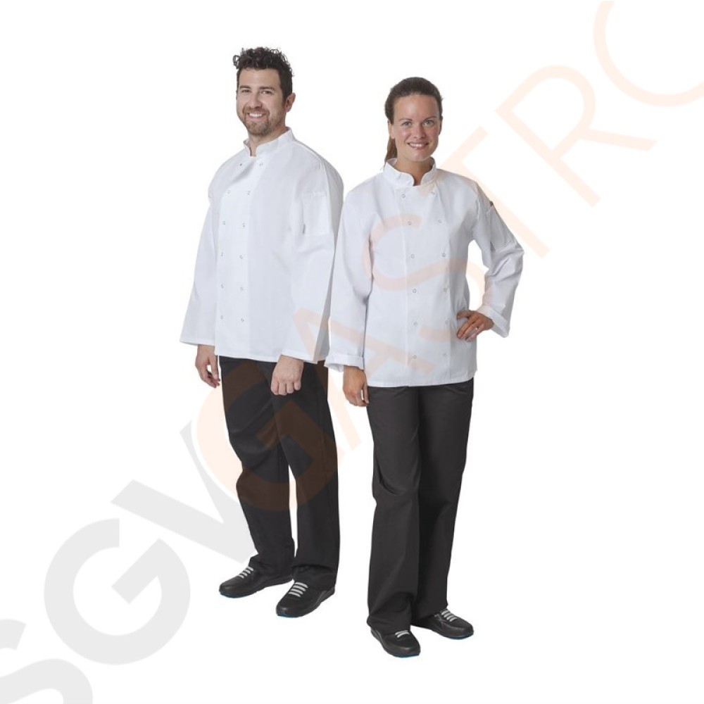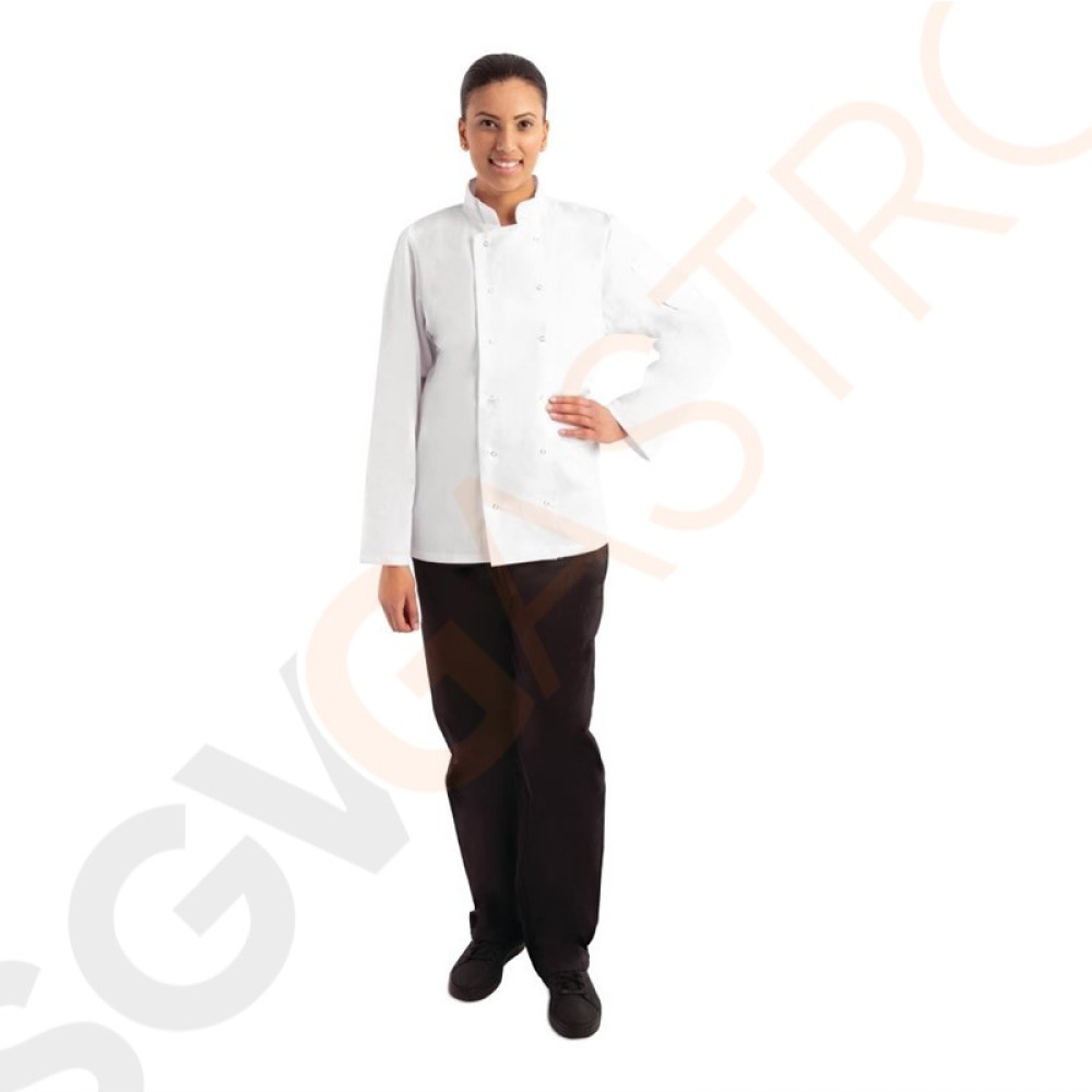 Einfache, robuste und komfortable Unisex-Jacken bieten ein hervorragendes Preis-Leistungsverhältnis für jede Küche. Zweireiher mit starken Nähten.